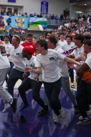 The boys' varsity basketball team defeats Model 50-63 at home during RUMPUS weekend. Houses also competed in a short minute-to-win-it event for RUMPUS points during halftime.