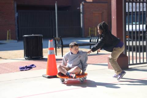 Teachers surprised students in grades 3-5 with their annual "Snow Day" on Feb. 9 as part of the exploratory program. Centered around the Winter Olympics, this year's Snow Day included a STEM activity to build and race tin foil skiers, creating 3D snowflakes in art, Olympics trivia, and more. There was also a curling activity and lesson from guest speaker Dr. Dixon Freeman: a local physician and founding member of the Atlanta Curling Club who has served as the group’s representative to the Grand National Curling Club and USA Curling.