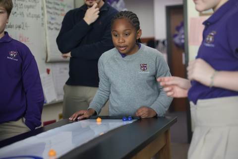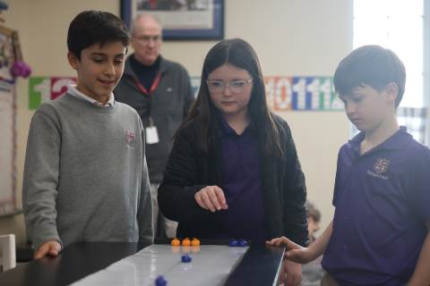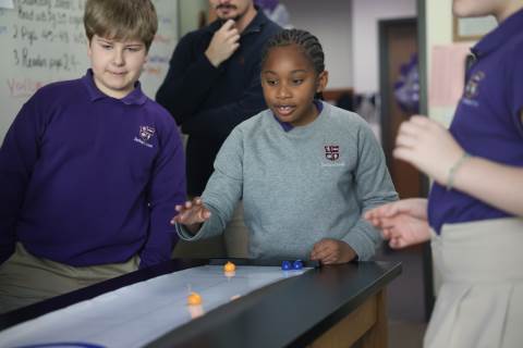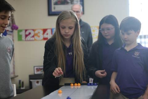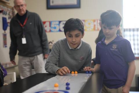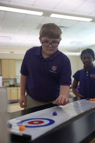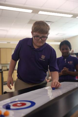 Teachers surprised students in grades 3-5 with their annual "Snow Day" on Feb. 9 as part of the exploratory program. Centered around the Winter Olympics, this year's Snow Day included a STEM activity to build and race tin foil skiers, creating 3D snowflakes in art, Olympics trivia, and more. There was also a curling activity and lesson from guest speaker Dr. Dixon Freeman: a local physician and founding member of the Atlanta Curling Club who has served as the group’s representative to the Grand National Curling Club and USA Curling.